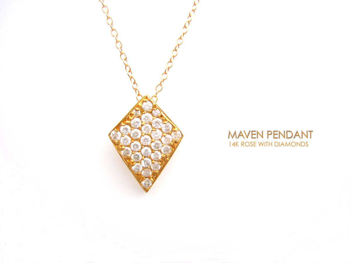 14k Rose Moxie necklace pave in white diamonds.
